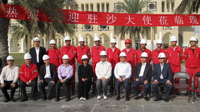 楊大使代表中國駐沙使館向施工現(xiàn)場干部職工致以誠摯的新春問候。楊大使鼓勵大家建一流工程,創(chuàng)一流業(yè)績,為祖國爭光。
