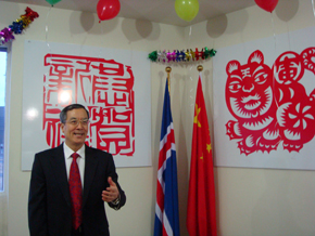 2010年2月7日,中國駐冰島大使館新樓尚待竣工,但一樓大廳高朋滿座、蓬蓽生輝。蘇格大使和夫人李靜舉辦新春招待會(huì),冰各界人士、華僑華人、中資機(jī)構(gòu)、中國學(xué)者和留學(xué)生數(shù)百人歡聚一堂。使館雷云霞參贊、經(jīng)商參處負(fù)責(zé)人劉波等全體出席。