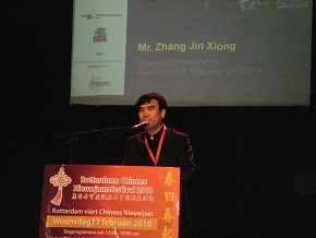 為迎接虎年到來,荷蘭各地華人社團(tuán)在地方政府支持下,舉辦了豐富多彩的中國新年慶;顒(dòng)。中國駐荷蘭使館政務(wù)參贊張晉雄先后分別出席由荷蘭華人經(jīng)濟(jì)技術(shù)中心、荷蘭文成同鄉(xiāng)會(huì)、荷蘭瑞安教育基金會(huì)、阿姆斯特丹華商會(huì)以及鹿特丹商鋪協(xié)會(huì)主辦的中國新年慶祝活動(dòng)。