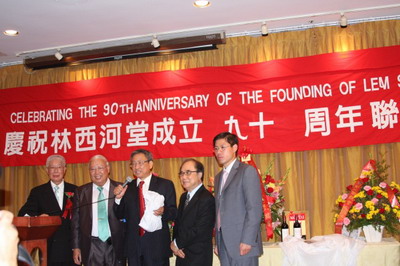 林西河堂系多倫多歷史悠久的華僑華人社團(tuán),今年正值該社團(tuán)成立九十周年。當(dāng)晚出席成立晚會的有多倫多華聯(lián)總會名譽(yù)主席伍卓生、全加華人促進(jìn)中國統(tǒng)一委員會(大多倫多區(qū))主席詹文義、大多倫多中華文化中心主席張明達(dá)、多倫多市議員李振光、凱利,列治文山市議員陳志輝以及舊金山市、溫哥華市林西河堂代表、各界僑胞共500多人。