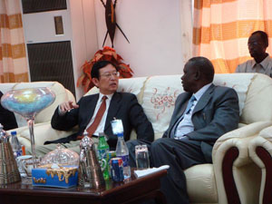 李大使會(huì)見(jiàn)上尼羅河州州長(zhǎng) 李大使慰問(wèn)公路營(yíng)地工作人員