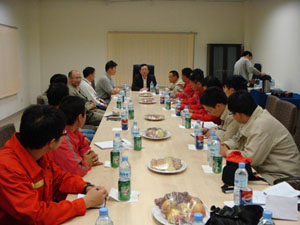李大使一行乘飛機(jī)到達(dá)位于上尼羅河州的法盧杰油區(qū)后,轉(zhuǎn)乘直升機(jī)抵達(dá)該州州府馬拉卡,后又回到法盧杰進(jìn)行慰問(wèn)考察。途中視察了油田附近多處中資公司營(yíng)地,了解生產(chǎn)、安保情況,并與營(yíng)地職工舉行座談會(huì),詢問(wèn)工人生活工作情況。李大使表示,新春佳節(jié)將至,提前向戰(zhàn)斗在工作第一線的工人兄弟拜個(gè)早年。油區(qū)條件十分艱苦,我前線工人克服重重困難,艱苦奮斗,在石油、路橋等領(lǐng)域做出了突出成績(jī),為蘇丹的經(jīng)濟(jì)發(fā)展和中蘇友好關(guān)系做出了積極貢獻(xiàn)。在新的一年里,希望大家努力工作,保重身體,注意安全,使館將繼續(xù)努力為中資機(jī)構(gòu)服務(wù),共同為公司發(fā)展和中蘇友好作出貢獻(xiàn)。