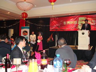 2010年4月30日,駐約翰內(nèi)斯堡總領(lǐng)事房利應(yīng)邀出席在南非約翰內(nèi)斯堡嘉年華娛樂中心舉行的《非洲時(shí)報(bào)》創(chuàng)刊5周年慶典晚會(huì)!斗侵迺r(shí)報(bào)》董事長(zhǎng)、全非洲和平統(tǒng)一促進(jìn)會(huì)會(huì)長(zhǎng)吳少康及南非僑團(tuán)主要僑領(lǐng)等數(shù)百人應(yīng)邀出席。