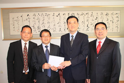 2010年8月20日,斯洛伐克中國(guó)經(jīng)濟(jì)貿(mào)易協(xié)會(huì)代表來(lái)到駐斯使館,向遭受特大山洪泥石流災(zāi)害的甘肅舟曲災(zāi)區(qū)人民捐款5800歐元,希望他們能夠渡過(guò)難關(guān)、重建家園。