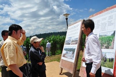 隨后,大家驅車百余公里赴盧南方省布塔雷市考察農(nóng)業(yè)技術示范中心新址,參觀即將竣工的中心大樓,聽取了擬議中的種桑養(yǎng)蠶、旱稻種植、水土保持等計劃。舒大使強調(diào),我與盧農(nóng)業(yè)合作與農(nóng)技推廣的最終目的在于幫助解決盧國百姓吃飯問題,而非為示范而示范。因此必需充分了解當?shù)氐募Z食生產(chǎn)結構,一個民族的飲食習慣很難改變。要真正推廣我們的農(nóng)技,還是要借鑒中心所在的盧國農(nóng)科院多年實行的農(nóng)技推廣選項和做法,真正使當?shù)厝嗣駨闹惺芤,得到實惠。我們的同志要多“走出去”考察當(shù)貙嶋H。建議今后中心培訓計劃中適當減少理論課,更重實習實踐。
