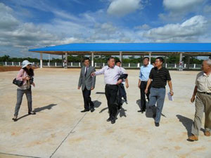 忻順康大使視察中國援建的農(nóng)業(yè)示范中心 忻順康大使與安徽外津建集團(tuán)總裁蔣慶德視察示范中心