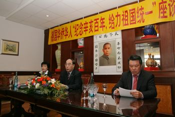 與會(huì)代表紛紛踴躍發(fā)言,回顧百年來辛亥革命對(duì)中國(guó)社會(huì)的影響,緬懷中山先生為“復(fù)興中華、統(tǒng)一中國(guó)”所做的功績(jī),一致表示將努力發(fā)揮海外僑胞的獨(dú)特作用,為推動(dòng)兩岸關(guān)系和平發(fā)展,為推進(jìn)祖國(guó)和平統(tǒng)一大業(yè)做出更大貢獻(xiàn)。旅德臺(tái)胞代表也表示,辛亥革命是兩岸人民曾為之奮斗的共同回憶,然而“統(tǒng)一尚未成功,同志仍須努力”,血脈相連、骨肉相親的兩岸同胞應(yīng)加強(qiáng)溝通,積累互信,共同完成中山先生的遺愿。