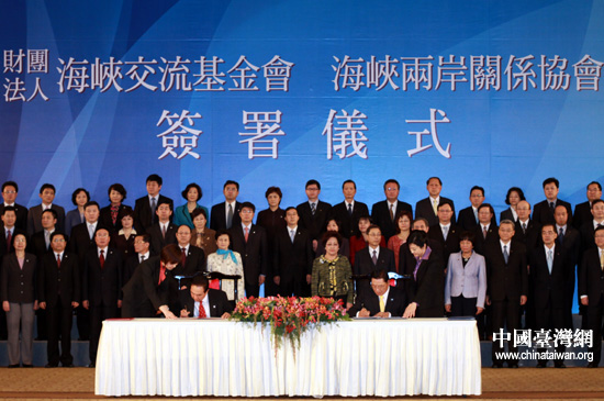 中國臺灣網(wǎng)12月21日臺北消息 兩岸兩會領(lǐng)導(dǎo)人第六次會談21日在臺北舉行。經(jīng)過一個上午的會談,當(dāng)日下午2點30分,海協(xié)會會長陳云林和;鶗麻L江丙坤正式簽署《海峽兩岸醫(yī)藥衛(wèi)生合作協(xié)議》。
