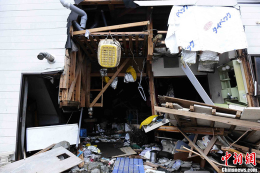 3月15日下午,日本巖手縣大船渡市受大海嘯襲擊后的一幢房屋。大船渡市緊鄰海港,是此次日本東北大地震中受災(zāi)最嚴重的地區(qū)之一。中新社發(fā) 侯宇 攝