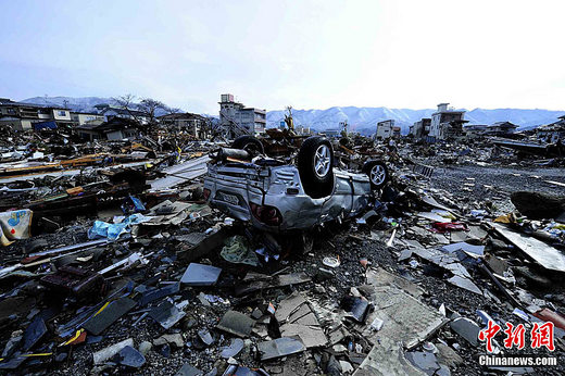 3月16日上午,日本巖手縣大船渡市遭“3.11日本大地震”引發(fā)的大海嘯襲擊后的景象。中新社發(fā) 侯宇 攝