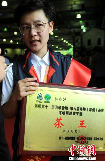 來自臺灣大 茶廠的林宣妤獲得本次茶王賽(凍頂烏龍)茶王。 張金川 攝