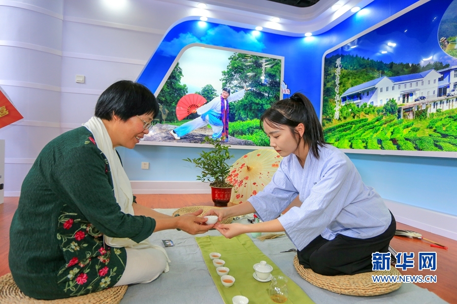 6月14日,茶文化體驗館,茶藝師表演傳統(tǒng)茶席文化項目。新華網(wǎng) 肖和勇 攝