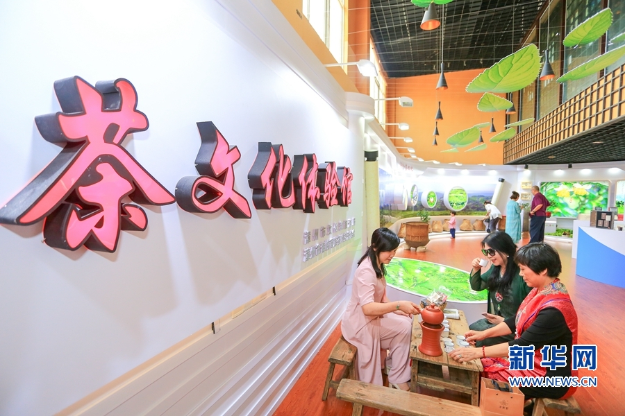 6月14日,在茶文化體驗館,一名客商正在品茶。新華網(wǎng) 肖和勇 攝