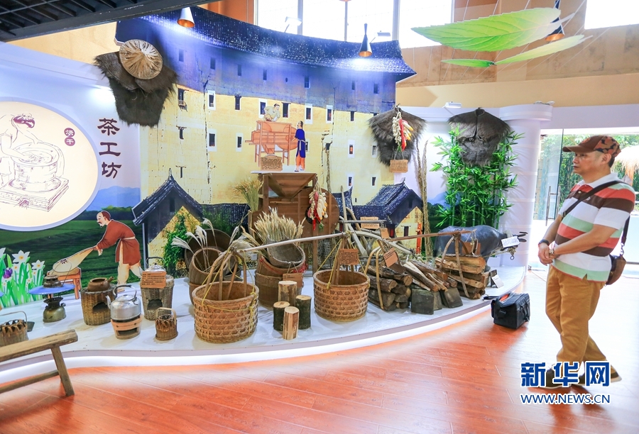 6月14日,茶文化體驗館,制茶師向公眾和客商展示傳統(tǒng)制茶工藝。新華網(wǎng) 肖和勇 攝