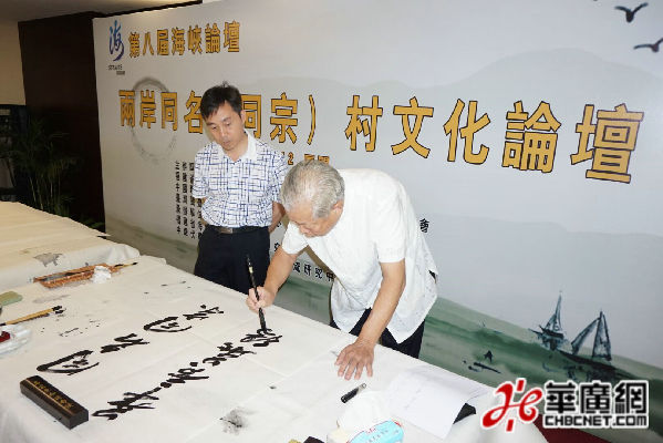 開幕式現(xiàn)場舉辦“中華情·兩岸緣”同名(同宗)村書畫作品展。(華廣網(wǎng)吳勇攝)