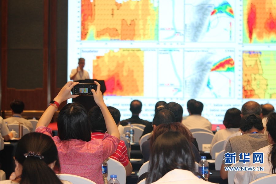 兩岸氣象業(yè)界共同研討如何提高氣象監(jiān)測(cè)預(yù)報(bào)預(yù)警能力,圖為觀眾用手機(jī)記錄演講“干貨”。新華網(wǎng) 劉默涵 攝