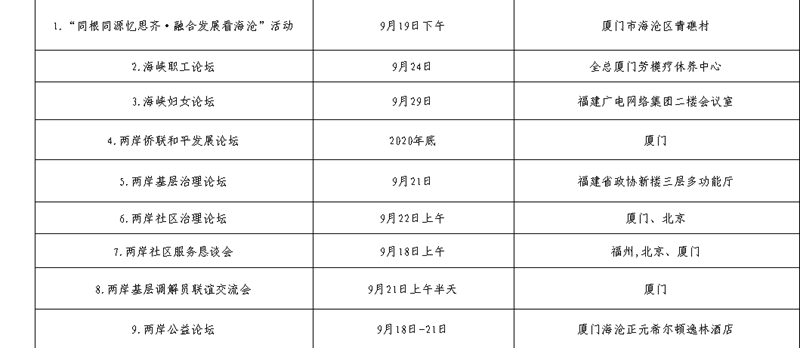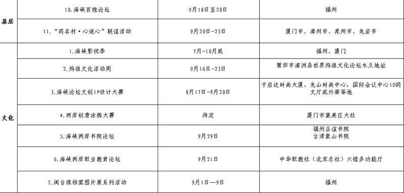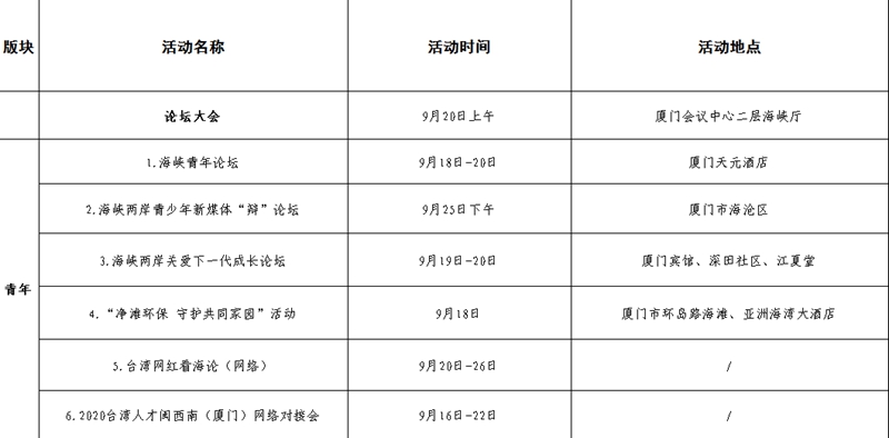 第十二屆海峽論壇活動一覽表