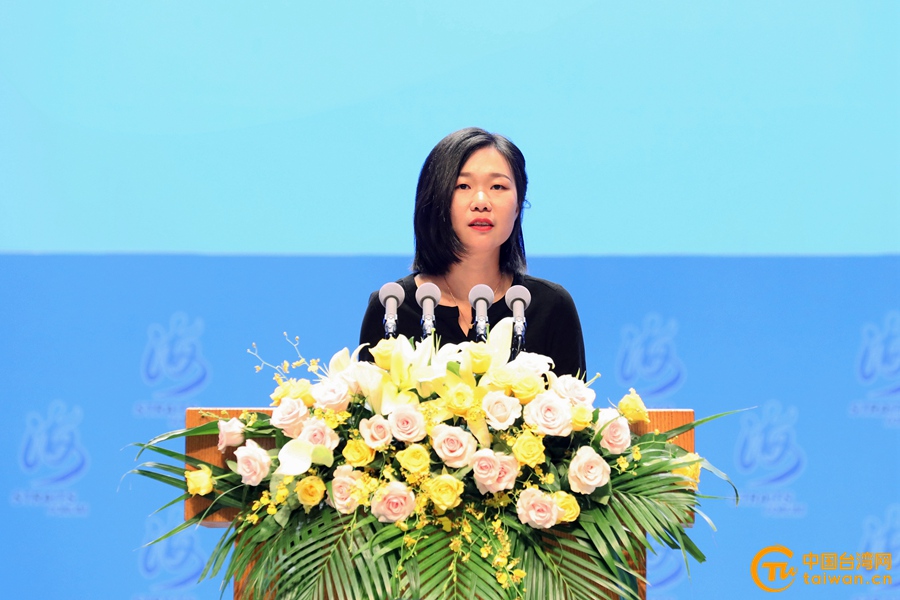 在閩創(chuàng)業(yè)臺(tái)灣青年、臺(tái)灣上趣開新團(tuán)隊(duì)執(zhí)行長(zhǎng)張欣頤在論壇大會(huì)上發(fā)言。(中國(guó)臺(tái)灣網(wǎng) 尹賽楠 攝)