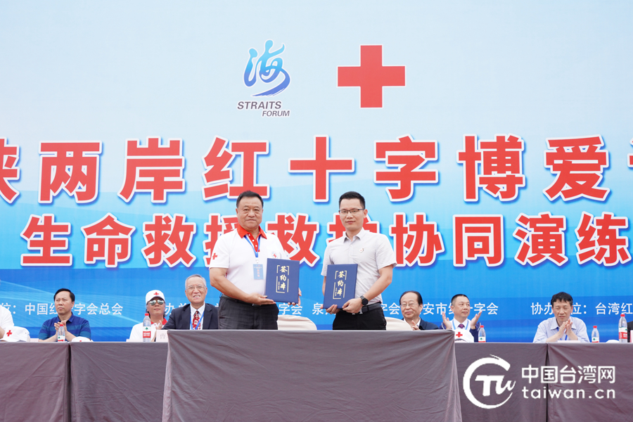 泉州市紅十字會(huì)與臺(tái)灣金門(mén)紅十字組織簽訂《海峽兩岸紅十字應(yīng)急救援協(xié)議》現(xiàn)場(chǎng)。(圖片來(lái)源:主辦方供圖)