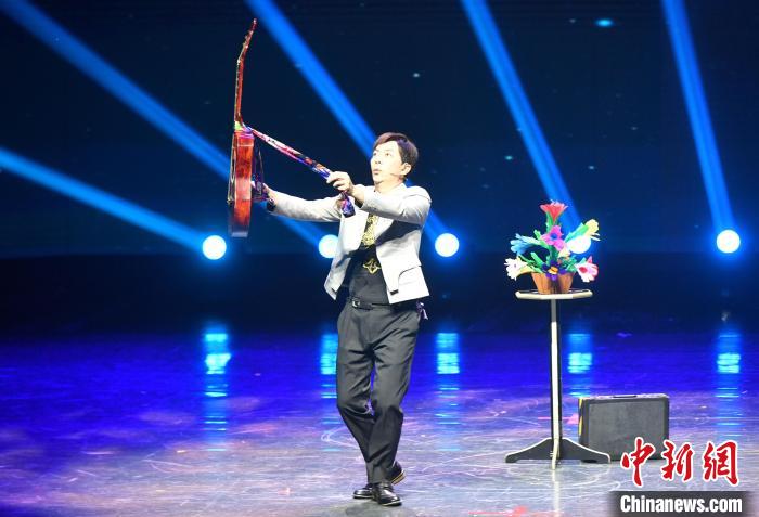 6月15日,海峽兩岸藝術(shù)交流活動在廈門啟動,“藝”心同行文藝演出同時(shí)舉行。本次活動包括海峽兩岸藝術(shù)交流節(jié)開幕文藝惠民演出、閩臺大學(xué)生魔術(shù)交流大會、海峽兩岸青少年街舞展演等內(nèi)容。圖為臺灣魔術(shù)師粘立人在臺上表演節(jié)目。中新社記者 呂明 攝