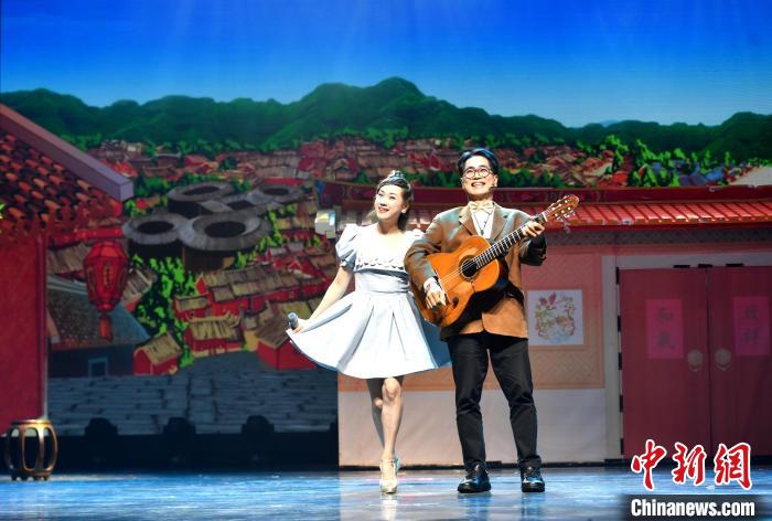 6月15日,海峽兩岸藝術(shù)交流活動在廈門啟動,“藝”心同行文藝演出同時(shí)舉行。本次活動包括海峽兩岸藝術(shù)交流節(jié)開幕文藝惠民演出、閩臺大學(xué)生魔術(shù)交流大會、海峽兩岸青少年街舞展演等內(nèi)容。圖為大陸歌手鄭莉莉(左)與臺灣歌手葉東安合唱歌曲《外婆的澎湖灣》。中新社記者 呂明 攝