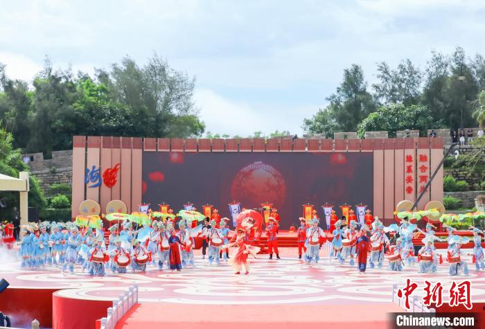 開幕式上,開場(chǎng)舞《跨越海峽的情緣》、關(guān)公戲曲聯(lián)唱《慶壽獻(xiàn)戲》、非遺表演《大海歡歌》等博得陣陣喝彩。大陸演員劉佩琦與臺(tái)灣演員、歌手黃維德領(lǐng)銜百人誦讀《神源一脈兩岸情》,帶領(lǐng)在場(chǎng)嘉賓感受關(guān)帝文化磅礴力量。