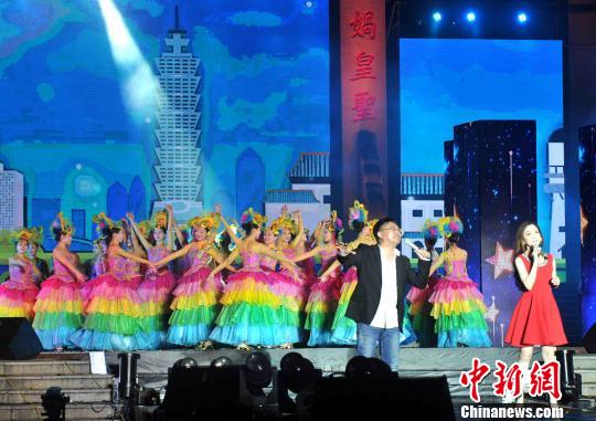 6月7日晚,來自海峽兩岸的青年歌手在歌會(huì)上共唱歌曲《兩岸一家親》。張斌 攝