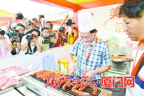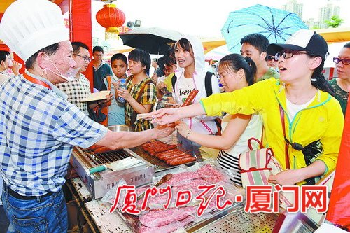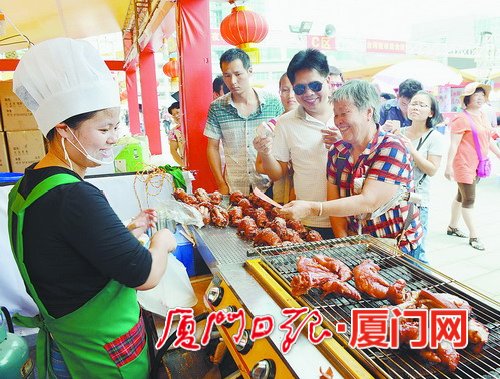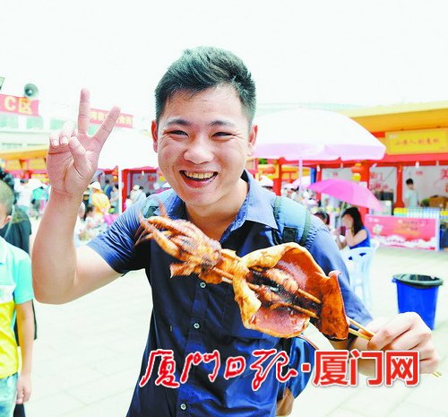 “前兩屆廟會我們都來參加,品嘗了許多‘古早味’臺灣美食。今年的廟會又帶來了更多的驚喜。”來自島內(nèi)的市民林先生一邊啃著萬鸞醬烤豬腳,一邊對記者說。放眼望去,整個海滄市民文化廣場熙熙攘攘,成了一片歡樂的海洋。