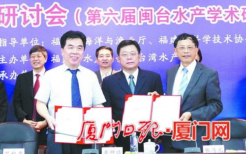 福建省水產研究所與臺灣海洋大學技術合作意向書簽訂儀式。(本組圖/記者鄭曉東攝)