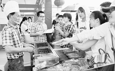 6月11日至15日,兩岸特色廟會(huì)在廈門(mén)海滄市民文化廣場(chǎng)舉辦。廟會(huì)設(shè)210個(gè)攤位,臺(tái)灣商家的攤位有170個(gè)。廟會(huì)還設(shè)10個(gè)青年創(chuàng)客攤位,給兩岸青年創(chuàng)客搭建了展示平臺(tái)。圖為來(lái)自臺(tái)北的一個(gè)攤位。