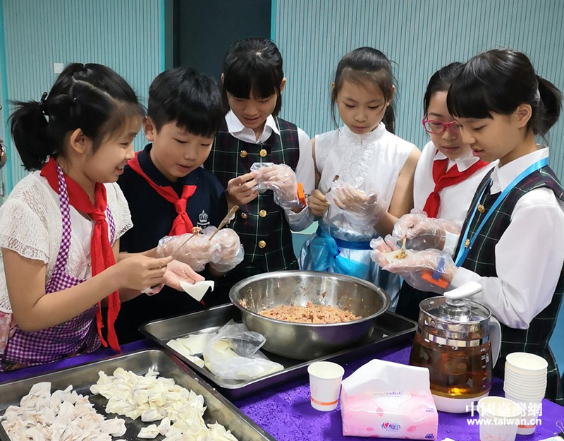 在福州中山小學(xué),兩岸小朋友一起包肉燕。(中國(guó)臺(tái)灣網(wǎng)發(fā))