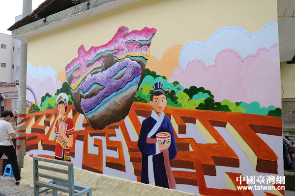 占據(jù)整面墻的作品(中國臺灣網(wǎng) 袁楚 攝)