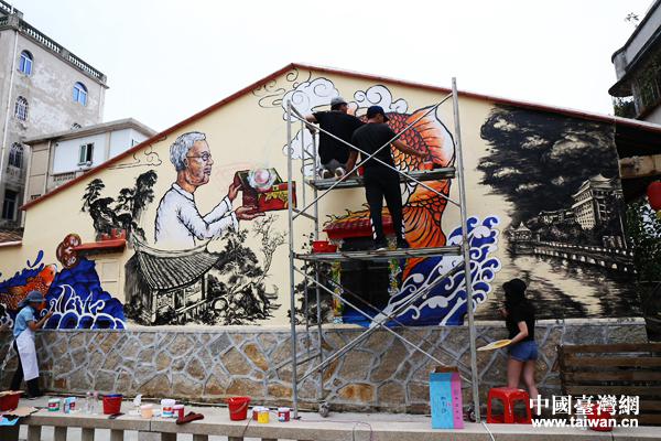 中國臺灣網(wǎng)6月6日廈門訊 (記者 袁楚)作為第十屆海峽論壇交流活動之一,“打破界限”兩岸創(chuàng)意涂鴉大賽作品決賽階段正在廈門市集美區(qū)如火如荼地進行。大賽以極具個性的涂鴉為活動內(nèi)容,通過抽簽的方式將兩岸的參賽選手交叉分組,合作完成決賽作品,讓兩岸藝術(shù)家在創(chuàng)作中深入合作互動,同時促進兩岸青年交流。來自兩岸的青年藝術(shù)家們不懼夏日炎熱,潛心創(chuàng)作,目前涂鴉作品已初具規(guī)模。