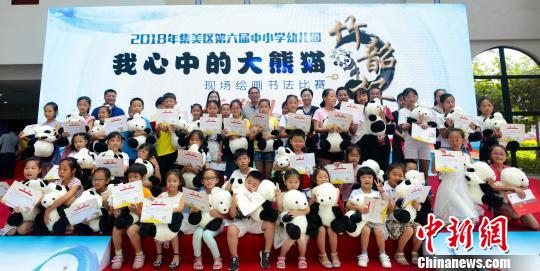 中新網(wǎng)廈門6月10日電 (楊伏山 林來(lái)生)大陸首個(gè)對(duì)臺(tái)研學(xué)基地10日舉行首屆“我心目中的大熊貓”現(xiàn)場(chǎng)繪畫比賽頒獎(jiǎng)儀式,從500幅參賽作品中脫穎而出、榮獲金獎(jiǎng)的49幅優(yōu)秀作品,在第十屆海峽論壇配套活動(dòng)之一的“兩岸特色廟會(huì)”亮相展出。