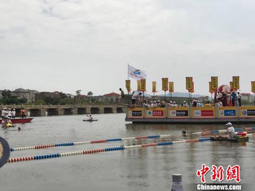 30日,第九屆海峽論壇——晉江市(安海)第六屆兩岸端午民俗旅游文化節(jié)拉開帷幕,引來(lái)兩岸民眾共“鬧”端午。圖為水上捉鴨活動(dòng)。劉真真攝