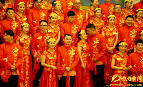 6月17日,來自海峽兩岸的百位新人互相許下婚姻誓言,這是九屆的海峽論壇第一次舉辦兩岸美麗新人集體婚禮。中共中央政治局常委、全國政協(xié)主席俞正聲到場為他們送上祝福。