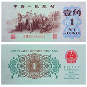 壹分、貳分、伍分、壹角、貳角、伍角和拾圓券的7個版別的正面,分別采用了汽車、飛機、輪船、拖拉機、火車、水電站和工農(nóng)業(yè)生產(chǎn)豐收的圖景;伍圓券的正面是各民族大團結(jié)的圖案;叁圓券、貳圓券及紅、黑兩版壹圓券中的圖案分別是井岡山龍源口橋、延安寶塔山和天安門。