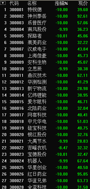 創(chuàng)業(yè)板28只個(gè)股開(kāi)盤27只跌停