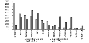 2010年三季度長期借款總額較高的部分行業(yè)