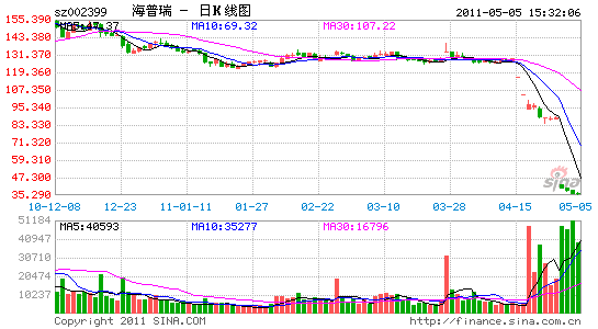 走下神壇的海普瑞,昨天的收盤(pán)價(jià)為35.65元,復(fù)權(quán)后股價(jià)為73.3元,較當(dāng)初148元的發(fā)行價(jià)已經(jīng)攔腰折斷。由于股價(jià)不斷下跌,海普瑞掌門(mén)人李鋰(專欄)夫婦的身家也縮水過(guò)半。