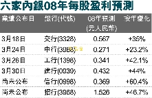 據(jù)香港文匯報報道,銀行H股2008年度業(yè)績將由中國交通銀行于18日揭開序幕。由于內(nèi)地銀行受海外金融市場的沖擊相對較小,且受惠于國家的刺激經(jīng)濟方案,市場料內(nèi)地銀行去年業(yè)績?nèi)员憩F(xiàn)強勁,但今年增長將趨緩。