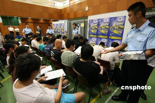 五月三十日下午,二百位報(bào)名參加輔助警察的香港青年,接通知來(lái)到位于九龍灣的香港輔助警察隊(duì)總部進(jìn)行入伍測(cè)試。 中新社發(fā) 鄭祚聲 攝