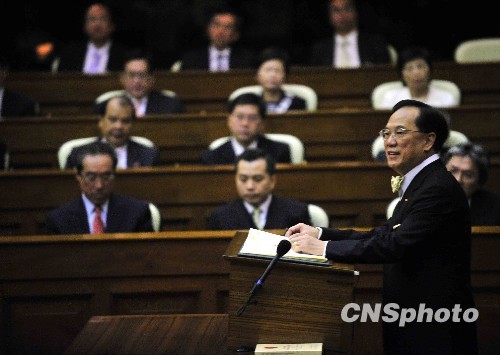 十月十四日,香港特區(qū)行政長官曾蔭權(quán)在立法會(huì)發(fā)表二零零九至二零一零年施政報(bào)告。 中新社發(fā) 譚達(dá)明 攝