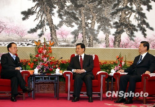 12月28日下午,國家主席胡錦濤在北京中南海會見前來述職的香港特區(qū)行政長官曾蔭權(quán),國家副主席習(xí)近平等參加會見。 中新社發(fā) 任晨鳴 攝