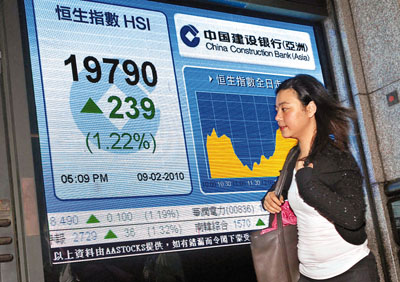 中新網(wǎng)2月10日電 據(jù)香港《文匯報》報道,市場憧憬歐盟高峰會將向希臘提供財政援助,略為紓緩?fù)饨绲膿鷳n,令港股結(jié)束3天跌市,9日全日收報19790點,升239點,總成交回升至619.21億元,國企指數(shù)則升211點,收報11200點。