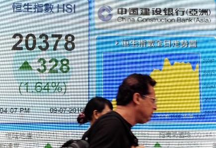 7月9日,行人從香港中環(huán)一家銀行的恒生指數(shù)電子顯示屏前走過(guò)。當(dāng)日,香港恒生指數(shù)收盤(pán)大漲328.10點(diǎn),報(bào)20378.66點(diǎn),漲幅1.64%。新華社記者宋振平攝
