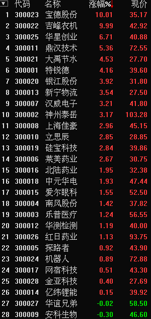 國恒鐵路等20余只個股漲停,無股跌停。創(chuàng)業(yè)板公司2跌26漲,其中2只漲停。