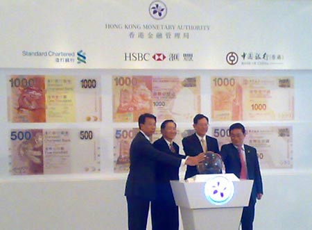 金管局總裁陳德霖發(fā)言時表示,為減低鈔票被偽冒的風(fēng)險,金管局與香港三間發(fā)鈔銀行于2007年中開始,經(jīng)過3年的研發(fā)設(shè)計了一套全新的鈔票系列,在籌備的過程中,他們采用了最尖端防偽設(shè)設(shè)及雕版印刷技術(shù),大大加強新鈔的防偽功能,及容易辨認(rèn)的優(yōu)點。