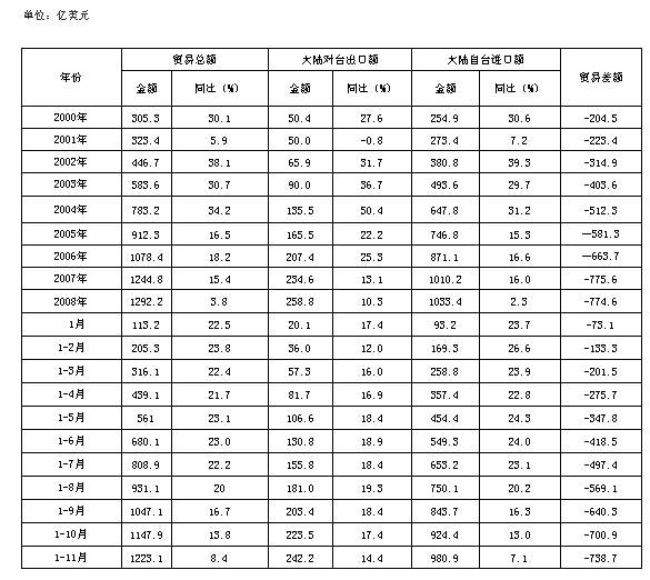兩岸貿(mào)易統(tǒng)計表(2000年—2008年)