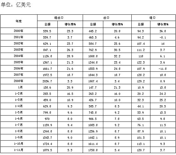 內(nèi)地與香港貿(mào)易統(tǒng)計表(2000年——2008年)